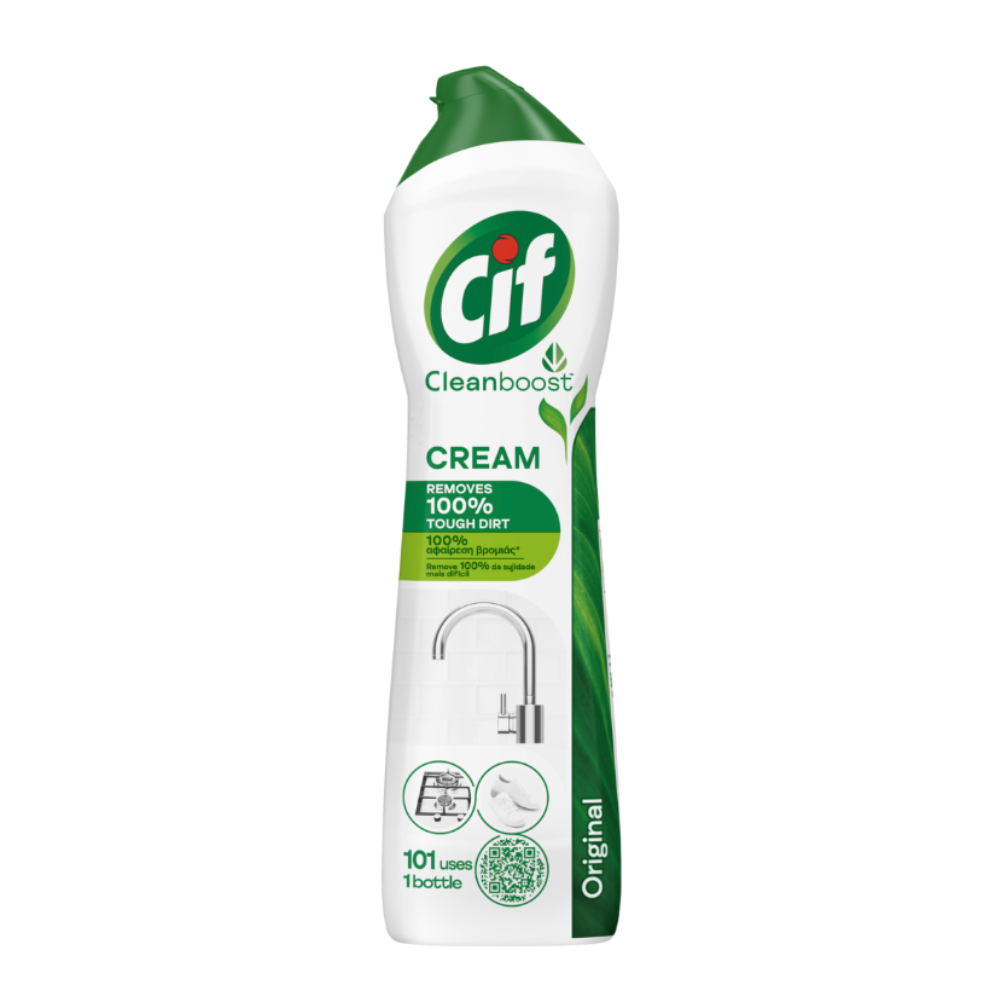 CIF Κρέμα Καθαρισμού 500 ml Original, ισχυρή κρέμα καθαρισμού για αποτελεσματική αφαίρεση επίμονων ρύπων χωρίς να φθείρει τις επιφάνειες. Η κλασική σύνθεση CIF απομακρύνει λίπη, άλατα και λεκέδες, αφήνοντας επιφάνειες καθαρές και λαμπερές. Ιδανική για επαγγελματική και οικιακή χρήση.