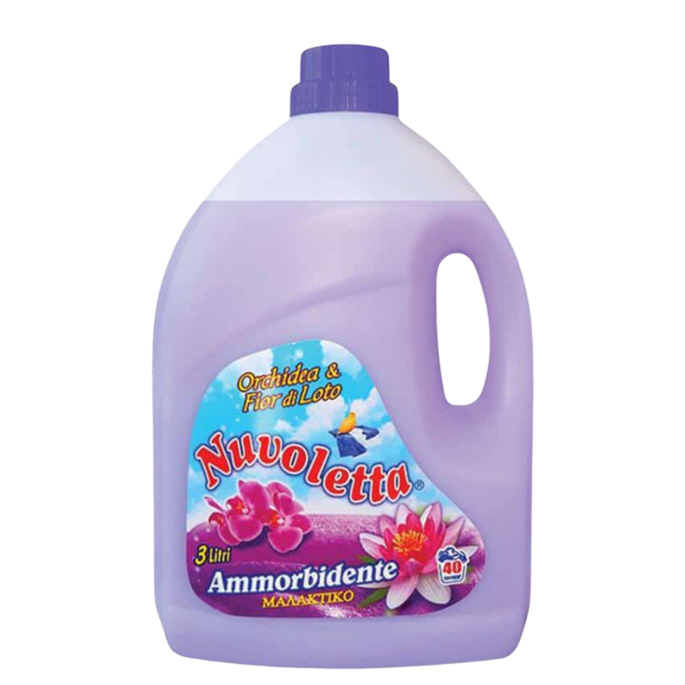 Μαλακτικό ρούχων Nuvoletta 3lt, 40 μεζούρες με απαλό άρωμα ορχιδέας για οικονομική απαλότητα και αρωματική καθαριότητα.